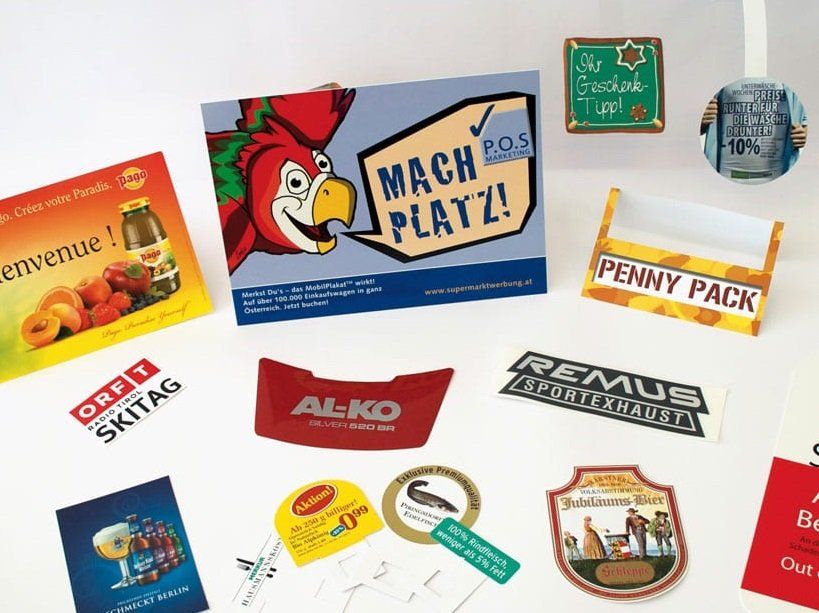 Here you will find a choice of articles including: Promotional goods including various printed matter. Various hanging materials and card holders. Adhesive frames with holders from A8 to A1.